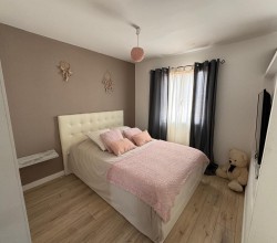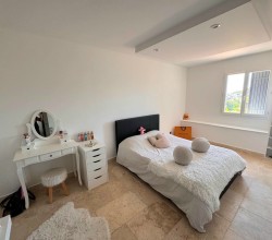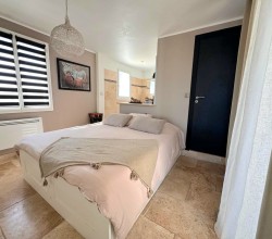 À l’étage, l’espace nuit se compose de deux chambres confortables, dont une avec dressing, ainsi que d’un bureau et d’une salle d'eau avec doubles vasques.