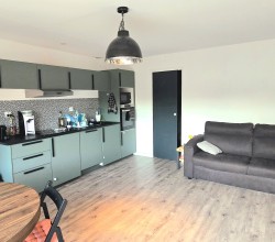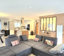 Dès l’entrée, les espaces de vie et de nuit sont distincts. D'un coté, le séjour spacieux et lumineux s’ouvre sur une cuisine de standing entièrement équipée, offrant un agencement pratique et convivial. Un cellier / buanderie complète parfaitement cet espace, pour plus de confort au quotidien.
