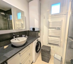 La cuisine, entièrement aménagée et équipée, dispose également de son propre balcon, idéal pour profiter de l’extérieur. Un cellier vient compléter cet espace..