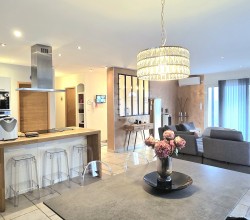Dès l’entrée, les espaces de vie et de nuit sont distincts. D'un coté, le séjour spacieux et lumineux s’ouvre sur une cuisine de standing entièrement équipée, offrant un agencement pratique et convivial. Un cellier / buanderie complète parfaitement cet espace, pour plus de confort au quotidien.