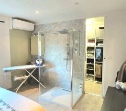 La maison bénéficie de prestations de qualité : climatisation, radiateurs à inertie, menuiseries PVC double vitrage et volets PVC.